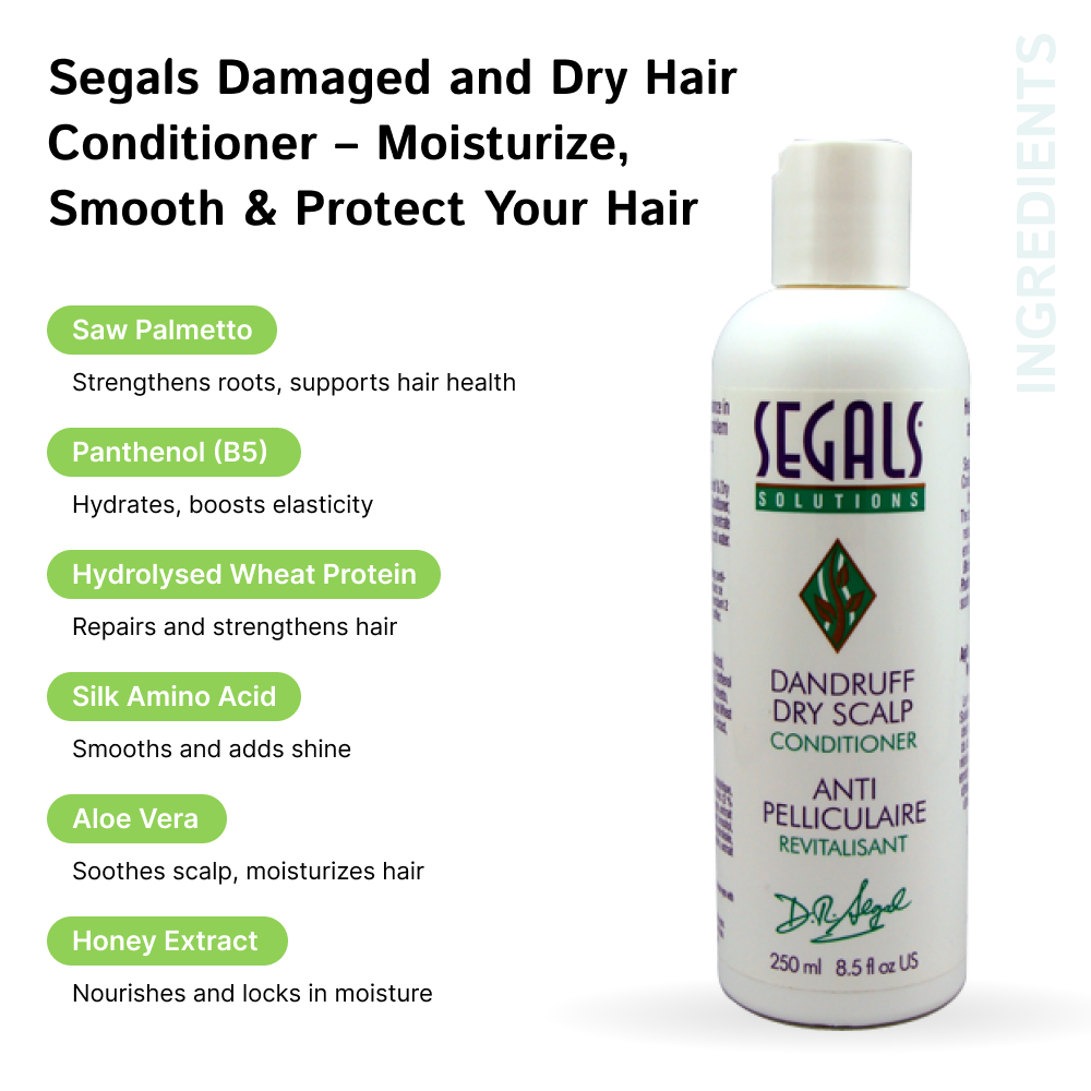 It helps smooth rough texture, minimize the appearance of split ends, and protect against damage caused by blow-drying, sun exposure, and salon treatments. This conditioner leaves hair feeling nourished, lightweight, and visibly healthier.For Best Results, use alongwith the Segals Advanced Hair Supplement, Segals Hair Root Formula and the Segals Damaged/Dry Hair Shampoo.
